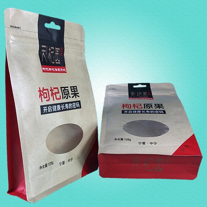 牛皮紙開窗八邊封自封袋(枸杞包裝袋)